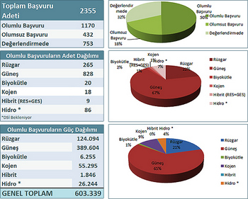 Rüzgar enerjisinde başvurular toplam 124 MW kapasite için 265 oldu. Toplam başvuru kapasitesi 603 MW oldu.